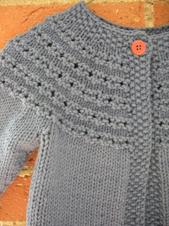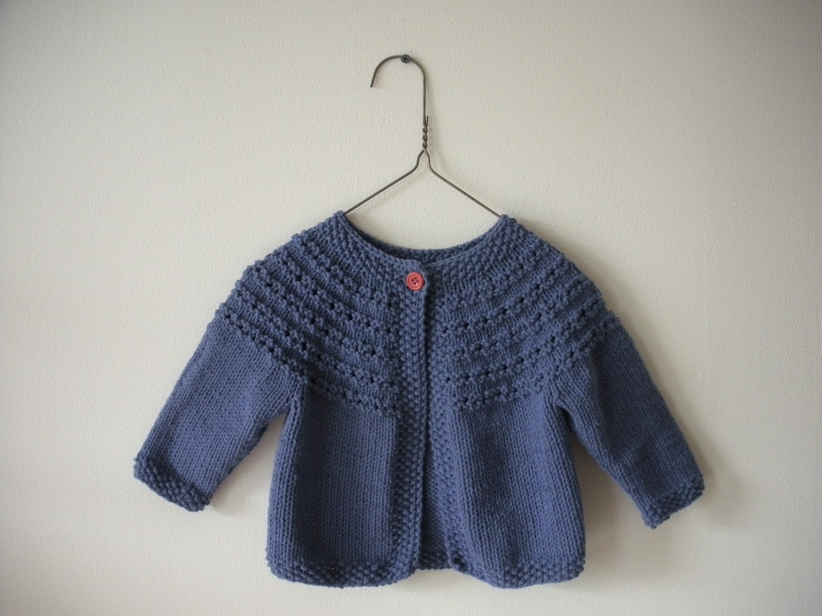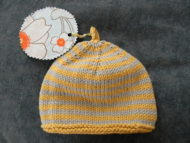 Patterns: Eloise Eyelet Cardi, Hat is a pattern that I came up with on my own and will hopefully get published one of these days. Gift tag is scrap fabric sewn to a piece of hand made paper, then trimmed with pinking shears.