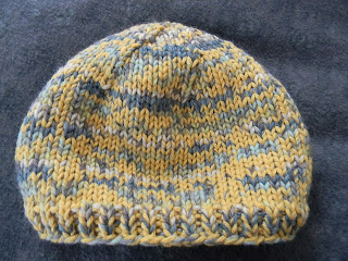 Made with Lion Brand Cotton-Ease (the multicolored hat is Cotton-Ease knit with a strand of left over Deborah Norville sock yarn from my stash)