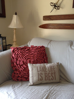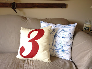 Got a few new pillows for summer for the couch.  The 3 (which happens to be our house number) was a $5 target find.  The “Lake life is best” was a gift from Burkett.  He found it in a shop in Lake Placid after a recent backpacking trip up in the Adirondacks.  And the sailboat pillow is one that I made a while back.  I’m planning to make something new for the love seat as well, but the sewing room is currently in a bit of disarray.
