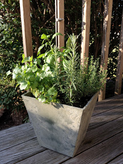 My herbs are filling in nicely.  I found this sub irrigation planter at Paul’s & Sandy’s and made it Earth box like by adding a fill tube.  It already had the bottom reservoir and overflow hole, just not a great way to fill it.