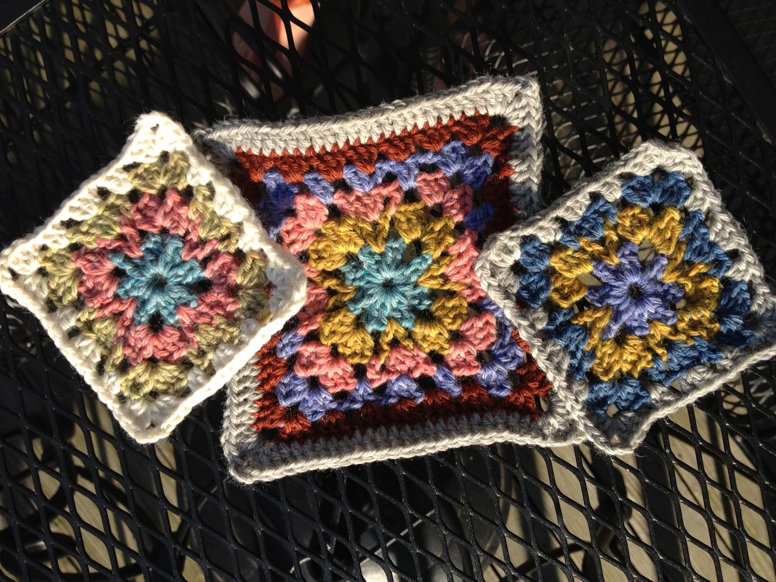 So I haven’t been doing a good job of keeping up with the granny square sampler.  Here are weeks 2, 3, and 4.  I went to Baltimore for work 2 weekends ago and spent much of last weekend designing, shopping, and painting furniture for a sewing room makeover (more to come later), so needless to say I wasn’t crocheting…now if only I can do last weeks and this weeks squares soon, I’ll be back on track.  That’s it for now!