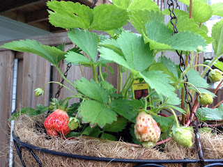 Our strawberries are starting to ripen and the sugar snap peas, tomatoes, and peppers are blossoming!