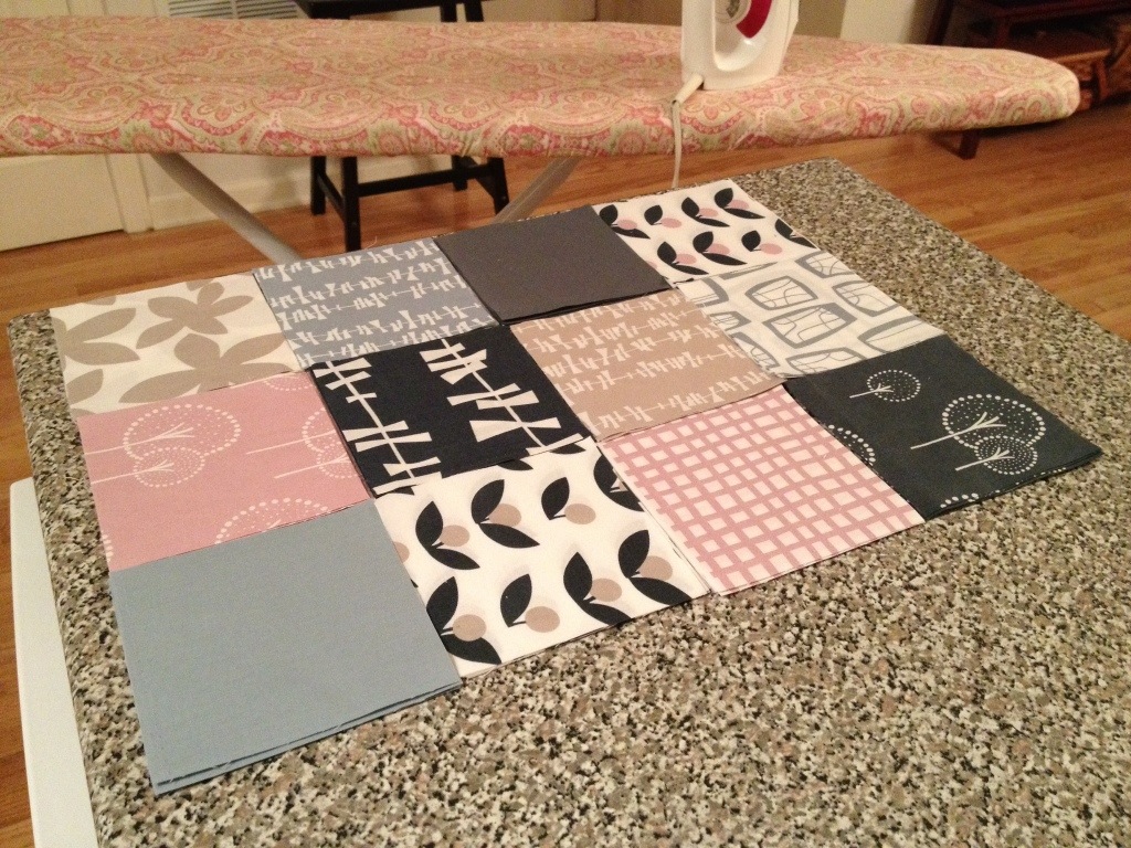 Despite being home ALL weekend, I did very little crafting. What can I say…it was a long week, I needed lots of sleep and there was a pile of laundry, a stack of magazines, and several episodes of The Voice calling my name. By Sunday, I was back on track and began cutting up this new stack of Lotta Jansdotter’s Glimma for a new baby quilt: